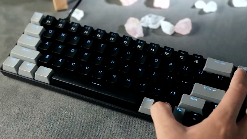 This model uses a 60 percent layout with 68 keys, helping save a lot of desk space while keeping essential functions close at hand. It includes dedicated arrow keys and access to function keys from F1 to F12 through simple key combinations. That balance makes switching between work tasks and entertainment feel natural. Its lightweight size also makes it easy to move or carry wherever it’s needed.